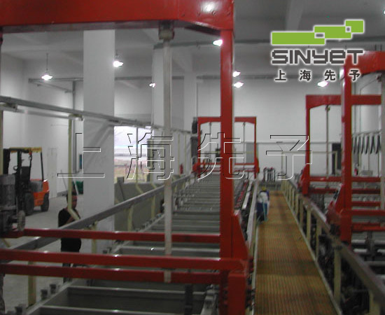 工藝塑料電鍍生產(chǎn)線采用了PLC(可編程序控制器)來實(shí)時監(jiān)控行車的自動運(yùn)行,同時實(shí)時監(jiān)控全線的設(shè)定參數(shù)的自動執(zhí)行,并可以與計算機(jī)相聯(lián),進(jìn)行生產(chǎn)的自動化數(shù)據(jù)管理,即DMS系統(tǒng)。 行車分為龍門式和懸臂式。行車的提升采用尼龍增強(qiáng)帶,使用時噪音極小且無需潤滑。滾鍍線可以加裝滾筒自轉(zhuǎn)滴液裝置。行車起重能力有50Kg到1000Kg不等,全部采用進(jìn)口剎車電機(jī)。